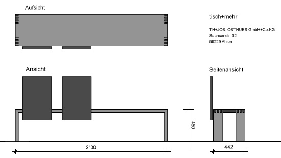 Die Masse der Bank sind bei den abgebildeten Modellen 210 x 44,2 x 45 cm (LxBxH) bzw. 160 x 44,2 x 45 cm (LxBxH)