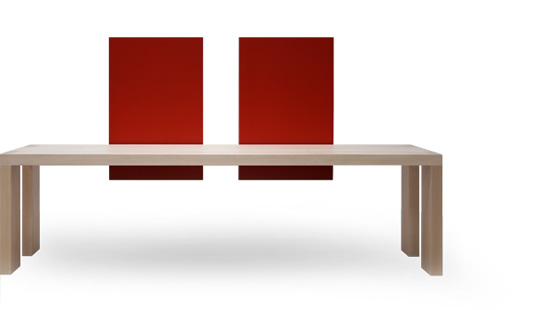 Ein bedeutendes ästhetisch funktionales Element der Sitzbank sind die vorgehängten, senkrecht stehenden Rückenlehnen. Diese neigen sich beim anlehnen und erhöhen dadurch maßgeblich den Sitzkomfort. Bezogen auf die Banklänge lassen sich die Lehnen je nach Wunsch individuell positionieren. Ein zusätzlicher gestalterischer Akzent wird durch die Farbgebung der Rückenlehne gesetzt.